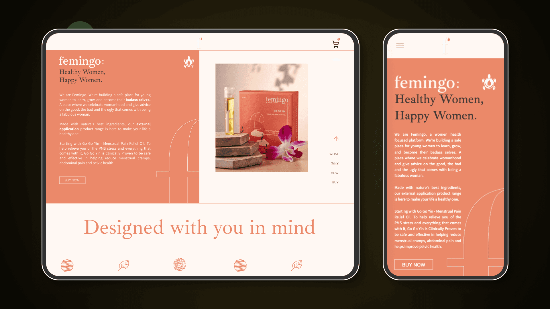 Femingo is a wellness brand and a platform for women. Starting with an all-natural period pain relief oil, Femingo was focused on building a safe space for women to grow, learn and embrace their beautiful selves.